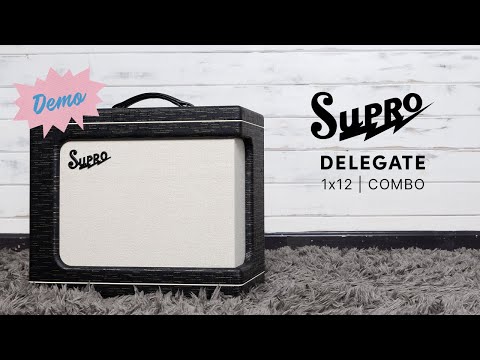MEET THE DELEGATE: Built by hand in the USA, the Supro Delegate Custom is a 25-watt 1x12 combo voiced to provide world-class touch sensitivity, exceptional midrange warmth, and rock & roll grind, redefining the apex of Supro tube amp tone. Housed in a mid-century, Valco-inspired wraparound cabinet, the Delegate features ultra-premium componentry, including top-of-the-line Mercury Magnetics transformers, vintage-correct Mallory capacitors, precision-matched EHX tubes, tube-driven spring reverb and a Celestion 12” Greenback speaker. The Delegate’s unique circuit topology is designed to optimize the amp’s top-shelf components, providing a wide-open, immediate sound that captures the distinct tonal characteristics that define the Supro sound within the pantheon of legendary electric guitar tones. Gushing overdrive and a hearth of warm mids allow the Delegate to sing at any volume. Every element within the amplifier has been selected to provide a broadband sound rich in even harmonic color and deeply responsive to your instrument. The preamp in the Supro Delegate employs a trio of 12AX7 tubes and a specially voiced 3-band EQ to make the most of the extended frequency response derived from the Mercury Magnetics transformer set. It delivers remarkably tactile response and blooming overtones across the full range of the guitar. Immediately following the preamp comes the signature Supro paraphase inverter stage followed by a master volume control that is optimally located within the circuit to preserve frequency response as well as the dynamic interaction between the all-tube preamp, 12AT7-driven spring reverb and Cathode-biased power amp. The Delegate’s Class-A output stage uses a pair of Electro Harmonix 6V6 tubes to deliver loads of natural tube compression and an exceptionally low noise floor, while its versatility allows for seamless transition from sparkling cleans into glorious tube overdrive.
