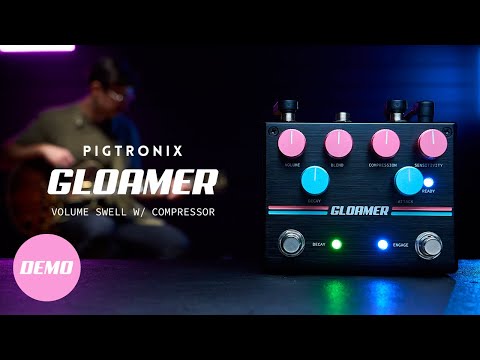Gloamer is an all-analog, polyphonic amplitude synthesizer that alters the attack and decay time of any sound source without sacrificing the fidelity of the original tone. Its attack function provides a pick-triggered volume swell: a cinematic “slow gear” effect that is smooth and controllable with variable timing from extremely fast to very slow. The volume swell cycle can be reset at any moment by muting, allowing players to craft bowed string-like lines and chords with ease. Gloamer also features a powerful optical compressor that can add subtle punch or extreme sustain, helping to maintain a smooth volume swell effect even with very long attack times. A Volume knob controls loudness at the peak of the attack cycle, while a master Blend control allows players to layer an uncompressed clean sound in with the volume swell effect. Additionally, when activated, the Decay function causes notes to fade out once the attack cycle is complete. When the decay cycle is completed, an auto-reset function causes the attack to begin again immediately, as long as there is audio input. This allows you to create a wide range of undulating, asymmetrical tremolos at slower settings as well as pulsating stutter effects when using faster attack and decay times.